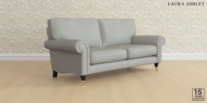 6.12.1 Buy Kingston by Laura Ashley 3 Seater Small Sofa Edwin Herringbone Pale Steel Grey Low Brass Castor - Black from the Next UK online shop Click here to use our accessible website