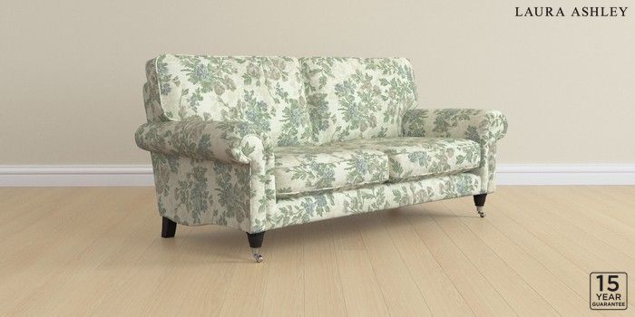 6.12.1 Buy Kingston by Laura Ashley 3 Seater Small Sofa Ellerby Seaspray Blue Low Chrome Castor - Black from the Next UK online shop Click here to use our accessible website