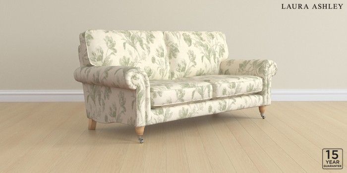 6.12.13 Buy Kingston by Laura Ashley 3 Seater Small Sofa Gosford Weave Sage Green Low Chrome Castor - Light Oak from the Next UK online shop Click here to use our accessible website