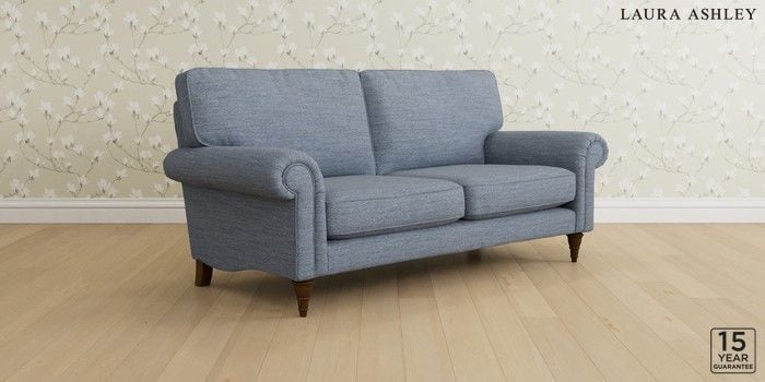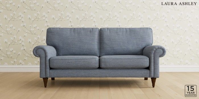 6.12.1 Buy Kingston by Laura Ashley 3 Seater Small Sofa Harley Seaspray Blue Low Turned - Teak from the Next UK online shop Click here to use our accessible website