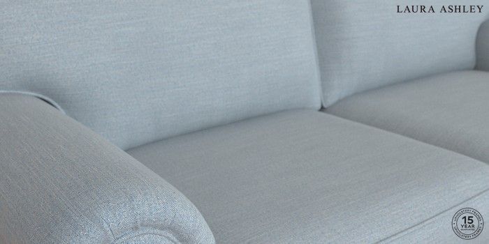 6.12.1 Buy Kingston by Laura Ashley 3 Seater Small Sofa Kinsham Seaspray Blue Low Brass Castor - Chestnut from the Next UK online shop Click here to use our accessible website