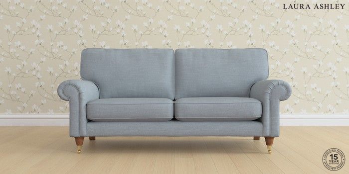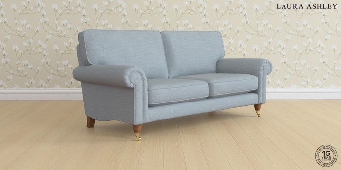 6.12.1 Buy Kingston by Laura Ashley 3 Seater Small Sofa Kinsham Seaspray Blue Low Brass Castor - Teak from the Next UK online shop Click here to use our accessible website