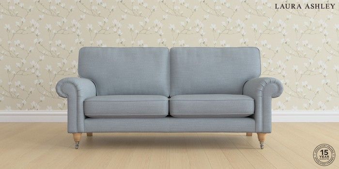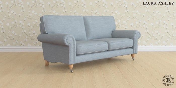 6.12.1 Buy Kingston by Laura Ashley 3 Seater Small Sofa Kinsham Seaspray Blue Low Chrome Castor - Light Oak from the Next UK online shop Click here to use our accessible website