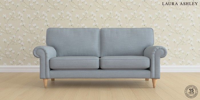 6.12.1 Buy Kingston by Laura Ashley 3 Seater Small Sofa Kinsham Seaspray Blue Low Turned - Light Oak from the Next UK online shop Click here to use our accessible website