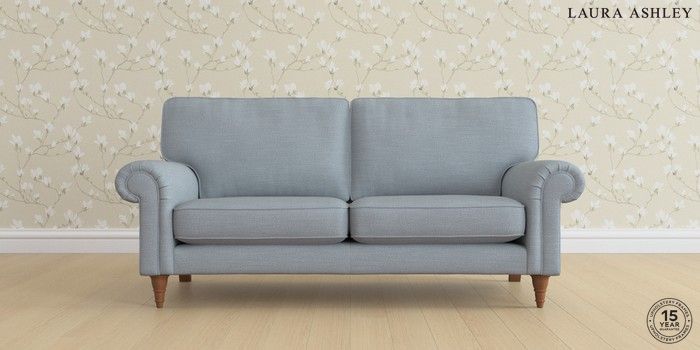 6.12.1 Buy Kingston by Laura Ashley 3 Seater Small Sofa Kinsham Seaspray Blue Low Turned - Teak from the Next UK online shop Click here to use our accessible website