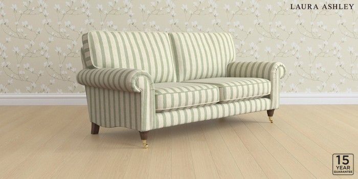 6.12.13 Buy Kingston by Laura Ashley 3 Seater Small Sofa Kinsham Stripe Hedgerow Green Low Brass Castor - Chestnut from the Next UK online shop Click here to use our accessible website