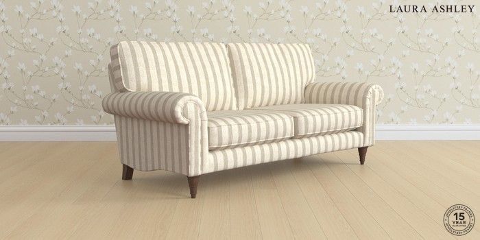 6.12.1 Buy Kingston by Laura Ashley 3 Seater Small Sofa Kinsham Stripe Natural Low Turned - Chestnut from the Next UK online shop Click here to use our accessible website