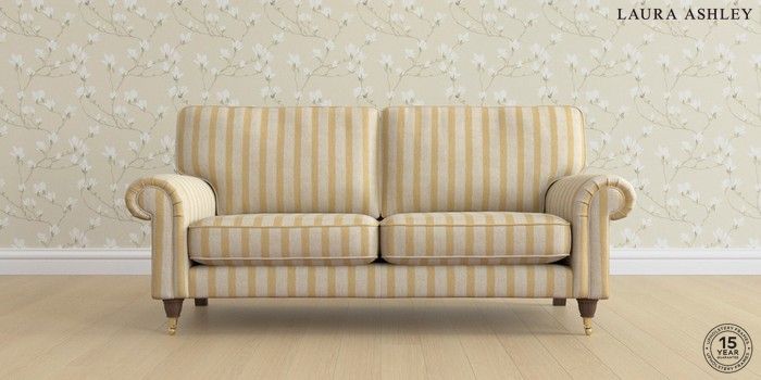 7.0.3 Buy Kingston by Laura Ashley 3 Seater Small Sofa Kinsham Stripe Ochre Yellow Low Brass Castor - Chestnut from the Next UK online shop Click here to use our accessible website