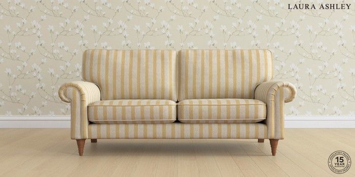 7.0.3 Buy Kingston by Laura Ashley 3 Seater Small Sofa Kinsham Stripe Ochre Yellow Low Turned - Teak from the Next UK online shop Click here to use our accessible website