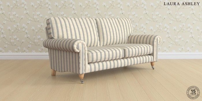 6.12.1 Buy Kingston by Laura Ashley 3 Seater Small Sofa Kinsham Stripe Seaspray Blue Low Chrome Castor - Light Oak from the Next UK online shop Click here to use our accessible website