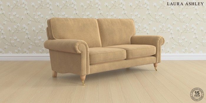 6.12.1 Buy Kingston by Laura Ashley 3 Seater Small Sofa Lundar Chenille Caramel Natural Low Brass Castor - Light Oak from the Next UK online shop Click here to use our accessible website