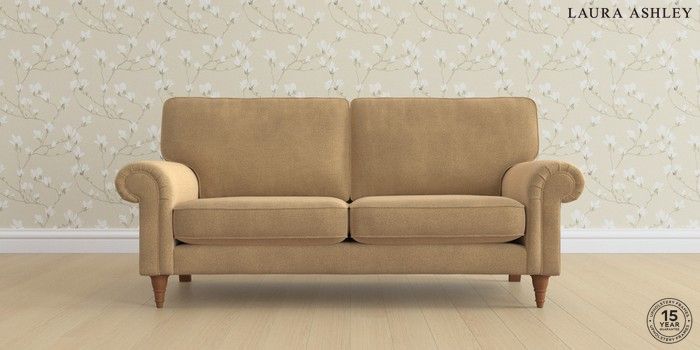 6.12.1 Buy Kingston by Laura Ashley 3 Seater Small Sofa Lundar Chenille Caramel Natural Low Turned - Teak from the Next UK online shop Click here to use our accessible website