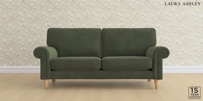 6.12.1 Buy Kingston by Laura Ashley 3 Seater Small Sofa Lundar Chenille Ivy Green Low Turned - Light Oak from the Next UK online shop Click here to use our accessible website