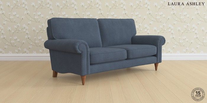 6.12.1 Buy Kingston by Laura Ashley 3 Seater Small Sofa Lundar Chenille Navy Blue Low Turned - Teak from the Next UK online shop Click here to use our accessible website