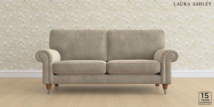 6.12.13 Buy Kingston by Laura Ashley 3 Seater Small Sofa Lundar Chenille Truffle Natural Low Chrome Castor - Teak from the Next UK online shop Click here to use our accessible website