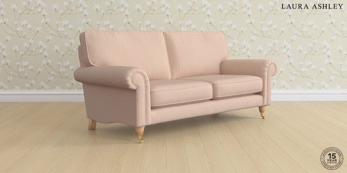 6.12.1 Buy Kingston by Laura Ashley 3 Seater Small Sofa Melbreak Geo Chalk Pink Low Brass Castor - Light Oak from the Next UK online shop Click here to use our accessible website