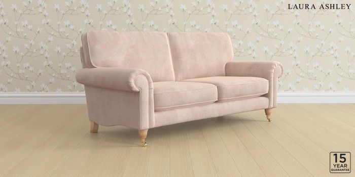 6.12.1 Buy Kingston by Laura Ashley 3 Seater Small Sofa Orla Chalk Pink Low Brass Castor - Light Oak from the Next UK online shop Click here to use our accessible website