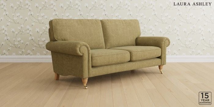 6.12.13 Buy Kingston by Laura Ashley 3 Seater Small Sofa Orla Gold Natural Low Brass Castor - Light Oak from the Next UK online shop Click here to use our accessible website
