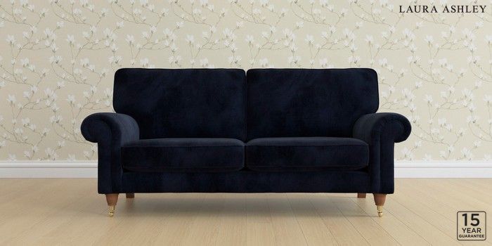 6.12.1 Buy Kingston by Laura Ashley 3 Seater Small Sofa Orla Midnight Navy Low Brass Castor - Teak from the Next UK online shop Click here to use our accessible website
