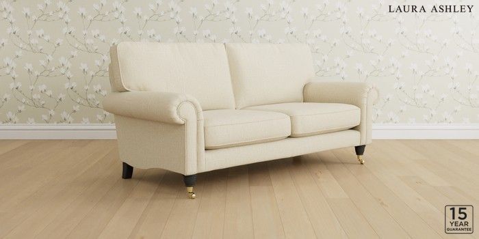 6.12.1 Buy Kingston by Laura Ashley 3 Seater Small Sofa Orla Oyster Natural Low Brass Castor - Black from the Next UK online shop Click here to use our accessible website