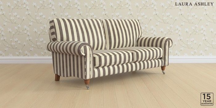 6.12.13 Buy Kingston by Laura Ashley 3 Seater Small Sofa Orla Stripe Dark Truffle Natural Low Chrome Castor - Teak from the Next UK online shop Click here to use our accessible website