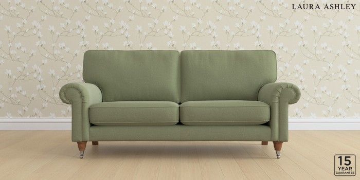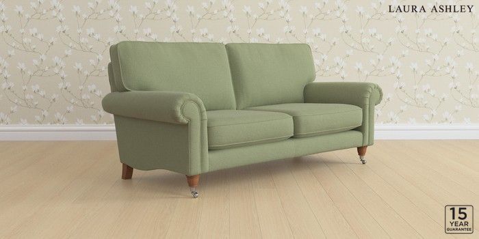 6.12.13 Buy Kingston by Laura Ashley 3 Seater Small Sofa Peyton Hedgerow Green Low Chrome Castor - Teak from the Next UK online shop Click here to use our accessible website