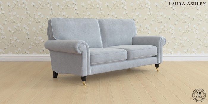 6.12.1 Buy Kingston by Laura Ashley 3 Seater Small Sofa Peyton Powder Blue Low Brass Castor - Black from the Next UK online shop Click here to use our accessible website