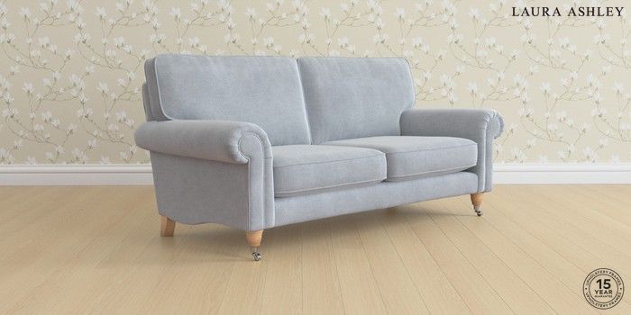 6.12.1 Buy Kingston by Laura Ashley 3 Seater Small Sofa Peyton Powder Blue Low Chrome Castor - Light Oak from the Next UK online shop Click here to use our accessible website