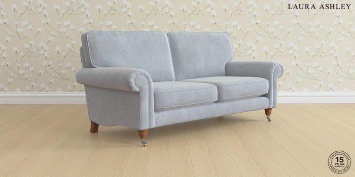 6.12.1 Buy Kingston by Laura Ashley 3 Seater Small Sofa Peyton Powder Blue Low Chrome Castor - Teak from the Next UK online shop Click here to use our accessible website