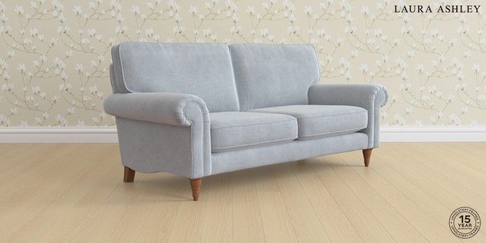 6.12.1 Buy Kingston by Laura Ashley 3 Seater Small Sofa Peyton Powder Blue Low Turned - Teak from the Next UK online shop Click here to use our accessible website