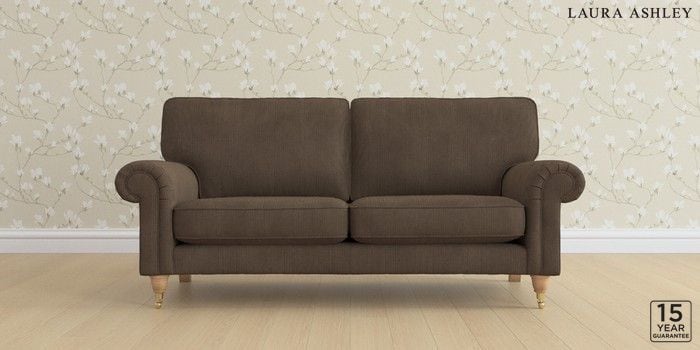 6.12.1 Buy Kingston by Laura Ashley 3 Seater Small Sofa Sinclair Cord Chocolate Brown Low Brass Castor - Light Oak from the Next UK online shop Click here to use our accessible website