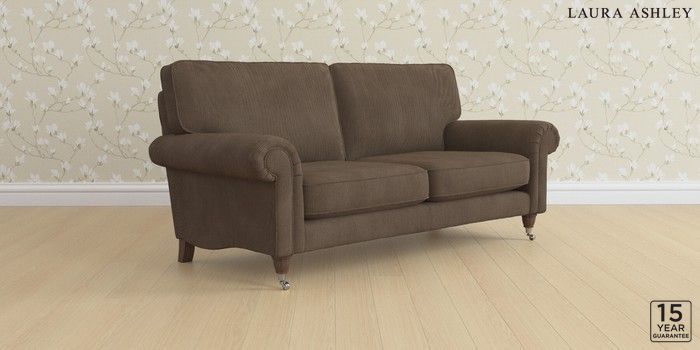 6.12.1 Buy Kingston by Laura Ashley 3 Seater Small Sofa Sinclair Cord Chocolate Brown Low Chrome Castor - Chestnut from the Next UK online shop Click here to use our accessible website