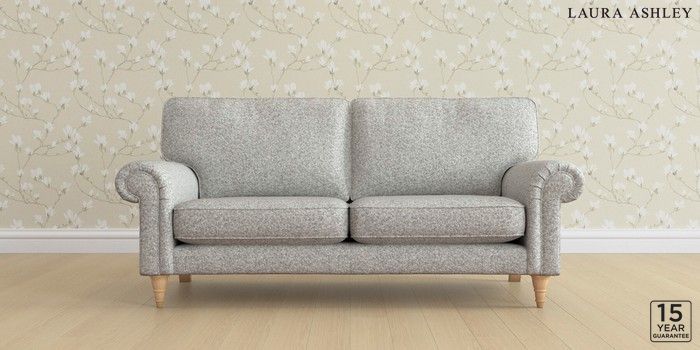 6.12.13 Buy Kingston by Laura Ashley 3 Seater Small Sofa Tichwell Steel Grey Low Turned - Light Oak from the Next UK online shop Click here to use our accessible website