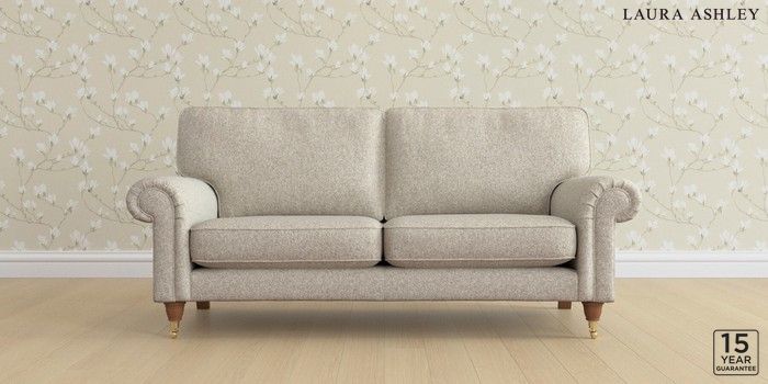 6.12.1 Buy Kingston by Laura Ashley 3 Seater Small Sofa Tichwell Stone Natural Low Brass Castor - Teak from the Next UK online shop Click here to use our accessible website