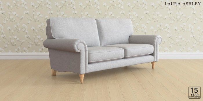 6.12.1 Buy Kingston by Laura Ashley 3 Seater Small Sofa Wooton Pale Steel Grey Low Turned - Light Oak from the Next UK online shop Click here to use our accessible website
