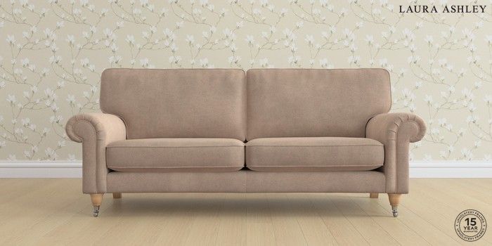 6.12.1 Buy Kingston by Laura Ashley 3 Seater Sofa Ailsworth Mink Natural Low Chrome Castor - Light Oak from the Next UK online shop Click here to use our accessible website