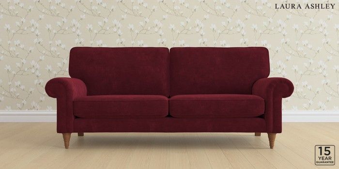 6.12.1 Buy Kingston by Laura Ashley 3 Seater Sofa Alwyn Velvet Burgundy Red Low Turned - Teak from the Next UK online shop Click here to use our accessible website