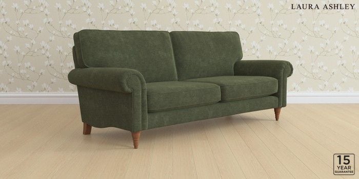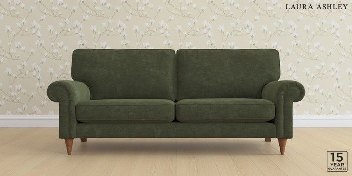 6.12.13 Buy Kingston by Laura Ashley 3 Seater Sofa Alwyn Velvet Ivy Green Low Turned - Teak from the Next UK online shop Click here to use our accessible website
