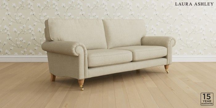 6.12.1 Buy Kingston by Laura Ashley 3 Seater Sofa Anneliese Natural Low Brass Castor - Light Oak from the Next UK online shop Click here to use our accessible website