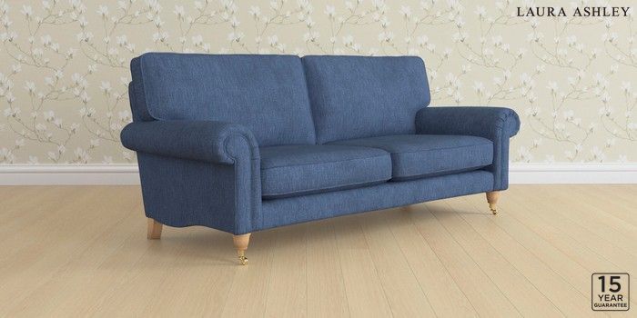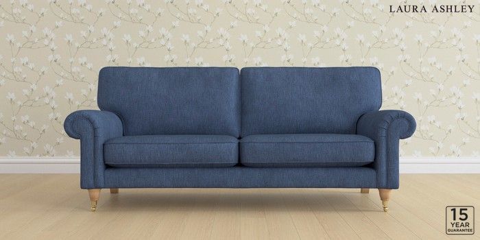 6.12.13 Buy Kingston by Laura Ashley 3 Seater Sofa Bainton Midnight Navy Low Brass Castor - Light Oak from the Next UK online shop Click here to use our accessible website