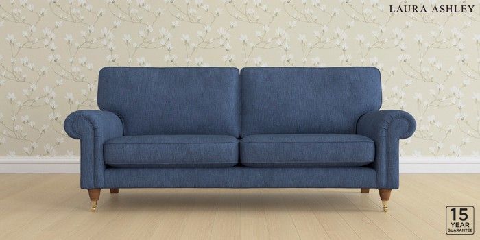6.12.1 Buy Kingston by Laura Ashley 3 Seater Sofa Bainton Midnight Navy Low Brass Castor - Teak from the Next UK online shop Click here to use our accessible website