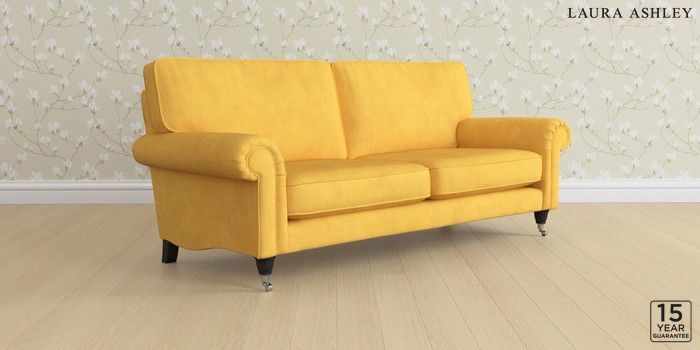 6.12.1 Buy Kingston by Laura Ashley 3 Seater Sofa Bainton Ochre Yellow Low Chrome Castor - Black from the Next UK online shop Click here to use our accessible website