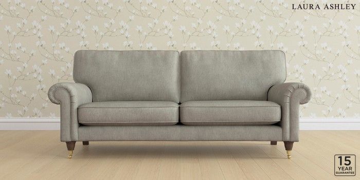 6.12.1 Buy Kingston by Laura Ashley 3 Seater Sofa Bainton Pale Steel Grey Low Brass Castor - Chestnut from the Next UK online shop Click here to use our accessible website