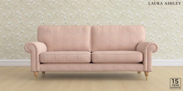 6.12.1 Buy Kingston by Laura Ashley 3 Seater Sofa Edwin Chenille Blush Pink Low Brass Castor - Light Oak from the Next UK online shop Click here to use our accessible website