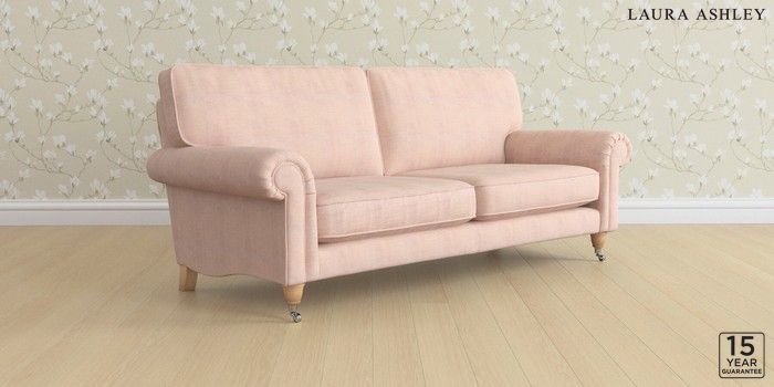 6.12.1 Buy Kingston by Laura Ashley 3 Seater Sofa Edwin Chenille Blush Pink Low Chrome Castor - Light Oak from the Next UK online shop Click here to use our accessible website