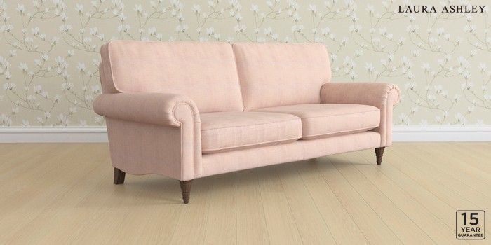 6.12.1 Buy Kingston by Laura Ashley 3 Seater Sofa Edwin Chenille Blush Pink Low Turned - Chestnut from the Next UK online shop Click here to use our accessible website