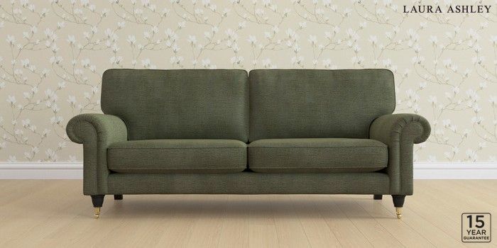 6.12.1 Buy Kingston by Laura Ashley 3 Seater Sofa Edwin Chenille Hedgerow Green Low Brass Castor - Black from the Next UK online shop Click here to use our accessible website
