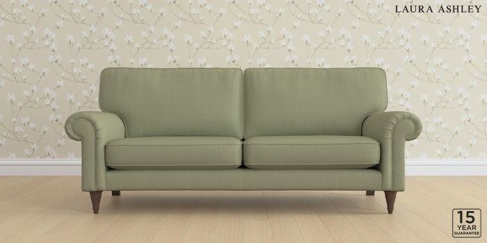 6.12.1 Buy Kingston by Laura Ashley 3 Seater Sofa Edwin Herringbone Hedgerow Green Low Turned - Chestnut from the Next UK online shop Click here to use our accessible website