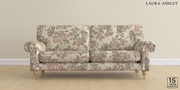 6.12.1 Buy Kingston by Laura Ashley 3 Seater Sofa Ellerby Grape Purple Low Brass Castor - Light Oak from the Next UK online shop Click here to use our accessible website