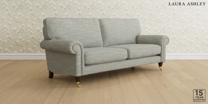 6.12.1 Buy Kingston by Laura Ashley 3 Seater Sofa Harley Dove Grey Low Brass Castor - Teak from the Next UK online shop Click here to use our accessible website